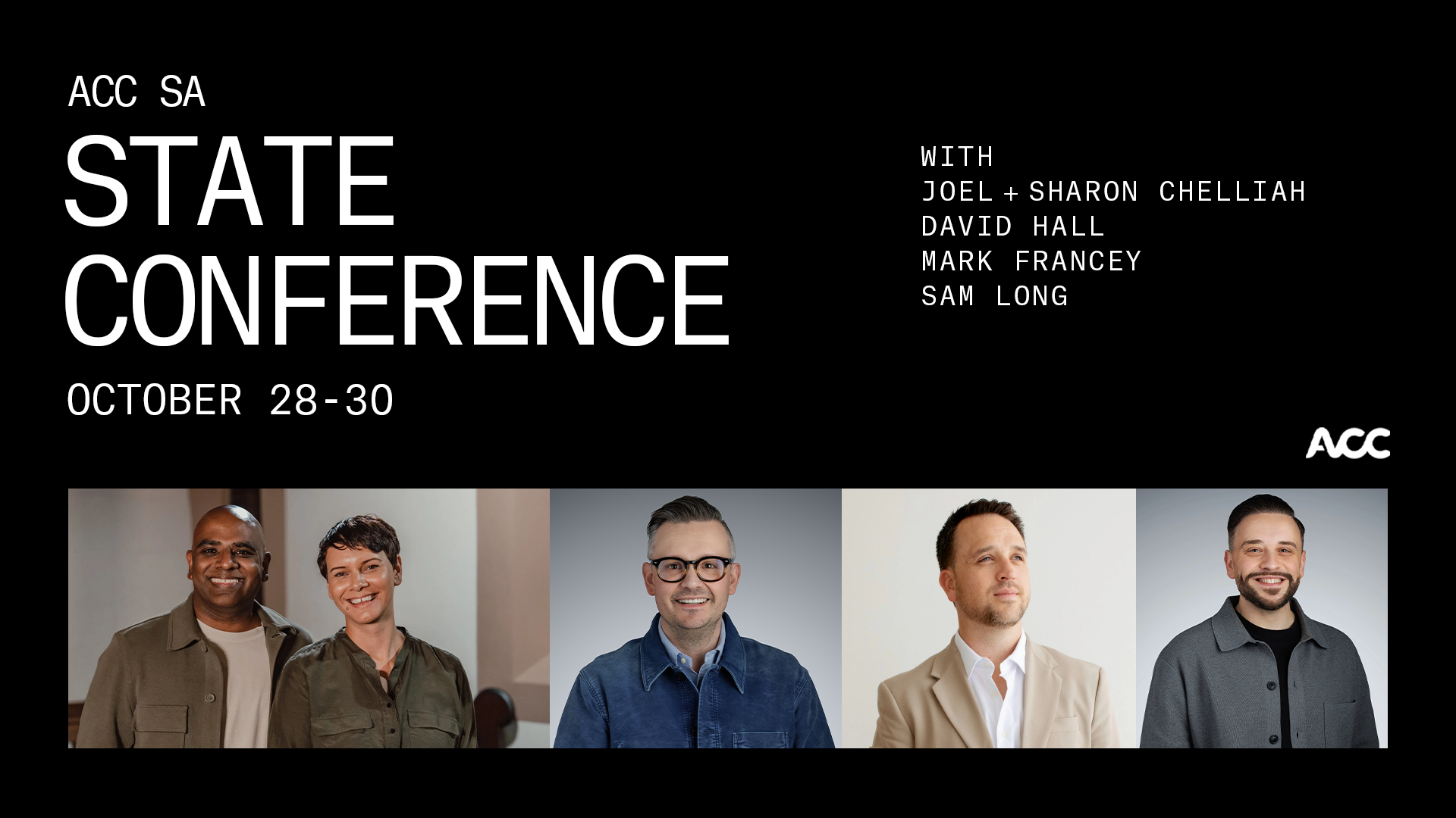 Oct 28 to 30 Oct ACC SA State Conference 2025 Tue, 28 Oct 2025 7:00 pm Thu, 30 Oct 2025 9:00 pm 231 Milne Road Modbury North, SA, 5092 Australia (map) Google Calendar ICS You are welcome to State Conference View Event →